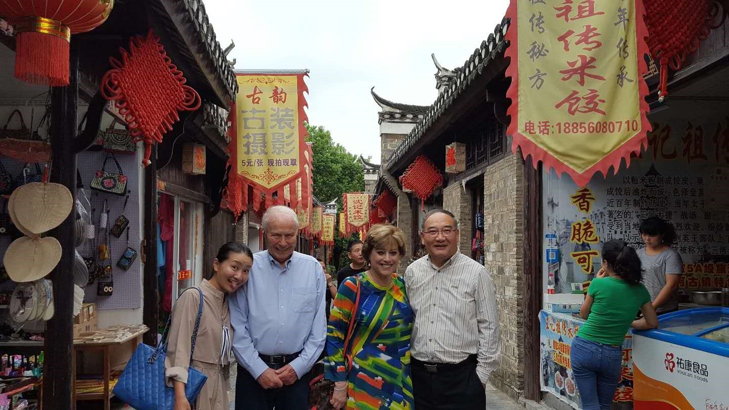 | 笔者(右一)与赫什科教授和夫人及翻译在三河古镇合影 |