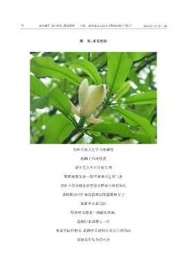 78 张济瑞等:龙年伊始,药苑情深——与您一起共读这几封来自药苑的春节“情书” 2024 年 2 月 第 1 期 第一封一封::来自厚朴来自厚朴 第 厚朴寄寓人生岁月的缱绻 抵御了风雨侵袭 挺立在人生岁月的长河 默默地散发着一股坚韧和力量的气息 厚朴不仅承载着新春佳节团圆幸福的快乐 还默默地守护着我们家园的温暖和安宁 在新春来临之际 厚朴树为您送上温暖的祝福: 愿我们也能像它一样 有着坚韧和信念,抵御岁月的洗礼和人生的风雨 迎接龙年佳节的喜庆