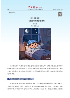 气促等症状,刺激性干咳是主要表现,而且这种咳嗽在夜间和凌晨尤为明显。在我国慢性咳嗽