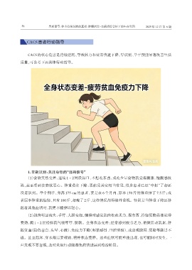 费劲,爬 1~2层楼梯就气喘吁吁、腿软。全身状态变差:经常感到疲劳乏力,稍微活动就累,伴